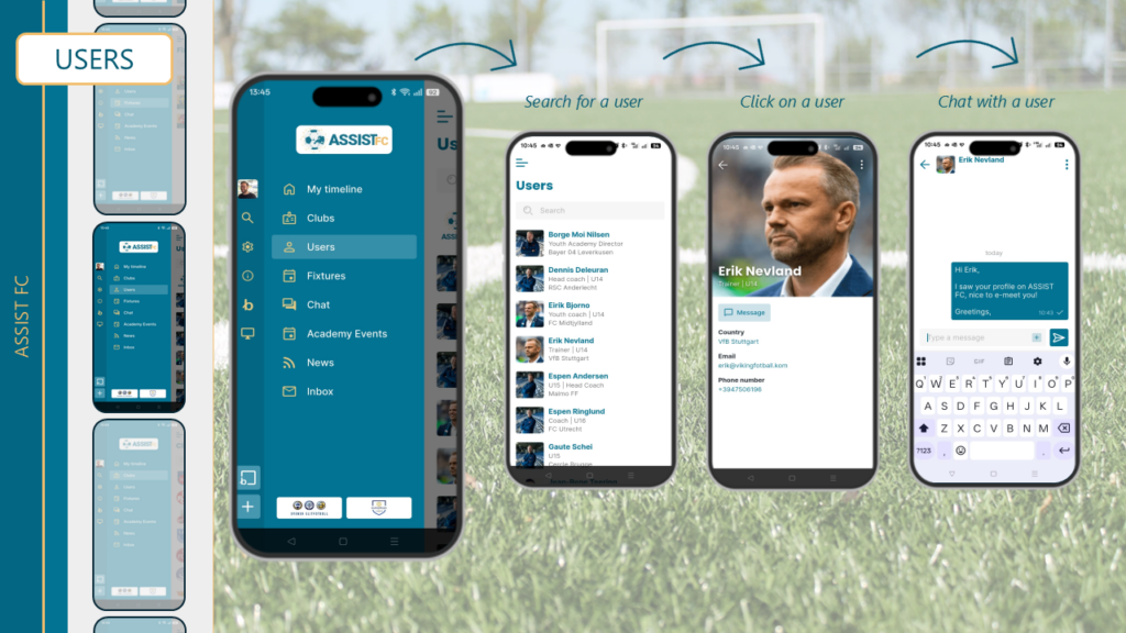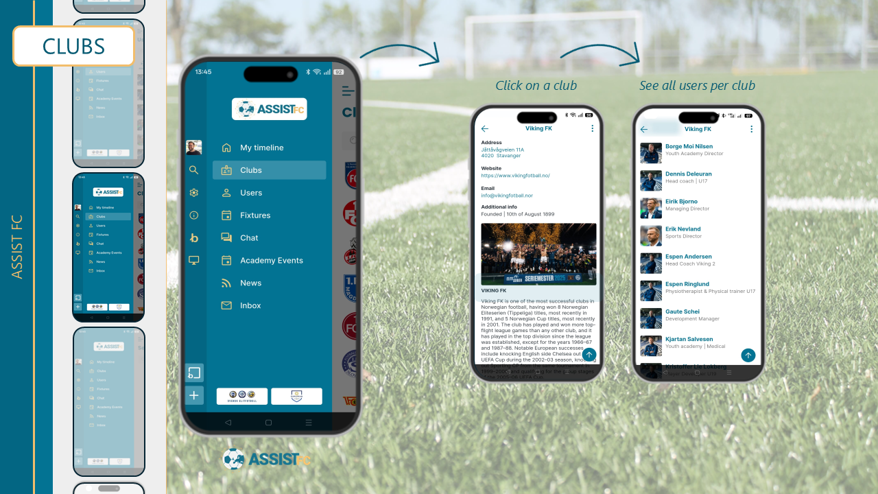 This page provides a complete overview of all USERS who are part of ASSIST FC, where you build the relationships. This is where the platform comes to life. You find the actual people behind the clubs, professionals in similar roles, facing similar challenges, working in different environments.